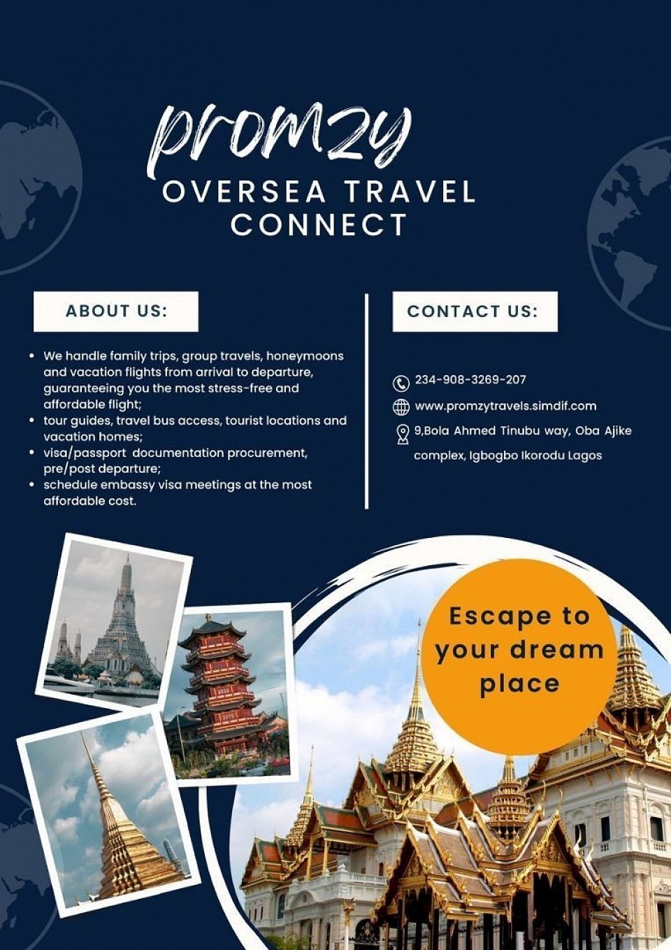 PROMZY Travels and Tour Connect is a Licensed Corporate Travel Management Company in Lagos Nigeria, which takes care of any tours and travel requirements of its esteemed client at a global level.